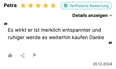 Schon nach wenigen Tagen der Anwendung bemerkte ich, wie Leo entspannter wurde und sich sein Verhalten deutlich besserte.
